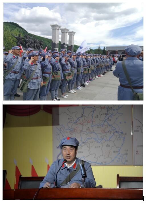前往六盤山途中,黨員們開展了唱紅歌、講紅色故事、朗誦紅色詩(shī)詞等活動(dòng),現(xiàn)場(chǎng)氣氛十分熱烈;到達(dá)六盤山后,黨員們穿紅軍服,接過(guò)紅一、二、四方面軍軍旗,沿著象征著紅軍二萬(wàn)五千里長(zhǎng)征的紅軍小道,途中經(jīng)過(guò)紅軍長(zhǎng)征經(jīng)歷的“遵義會(huì)議”、“四渡赤水”、“飛奪瀘定橋”、“巧渡金沙江”、“紅軍過(guò)草地”、“天險(xiǎn)臘子口”等大事件微縮景觀。在六盤山頂峰廣場(chǎng)三軍會(huì)師紅旗墻前,全體黨員重溫了入黨誓詞,列隊(duì)進(jìn)入紅軍長(zhǎng)征紀(jì)念館。在紀(jì)念館里,大家合唱了紅歌《歌唱祖國(guó)》,上了一次別開生面的黨課,在講解員的帶領(lǐng)下參觀革命文物陳設(shè)。再一次重溫了黨的光輝歷程,接著同志們就地吃了一頓紅軍餐,親身體驗(yàn)到了紅軍長(zhǎng)征的悲壯歷程和經(jīng)受的艱難困苦,感受偉大的長(zhǎng)征精神。