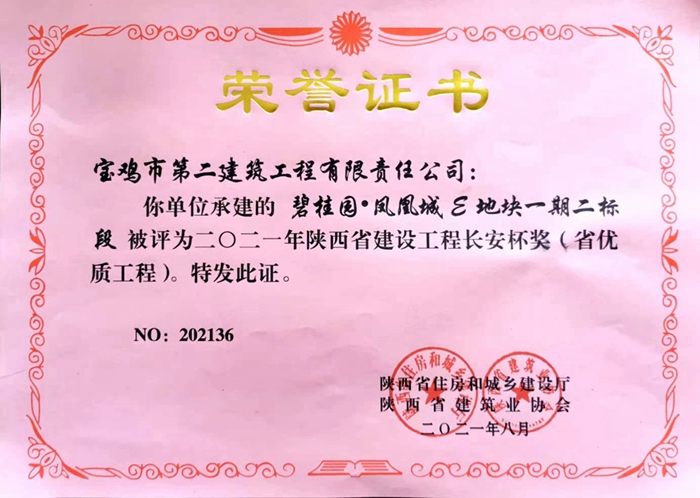 2021年陜西省建設(shè)工程長安杯獎(碧桂園?鳳凰城E地塊一期二標(biāo)段)