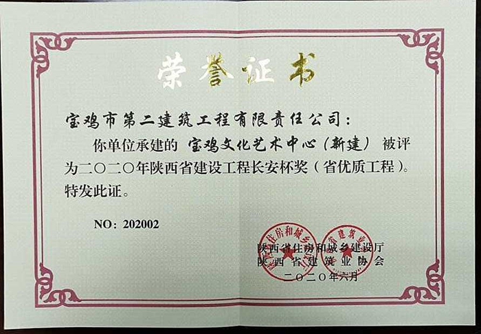 2020年陜西省建設(shè)工程長(zhǎng)安杯獎(jiǎng)(寶雞文化藝術(shù)中心)