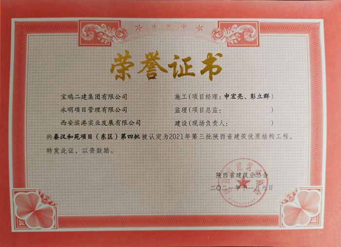 2021年度陜西省建筑優(yōu)質(zhì)結(jié)構(gòu)工程(秦漢和苑項目(東區(qū))第四批)