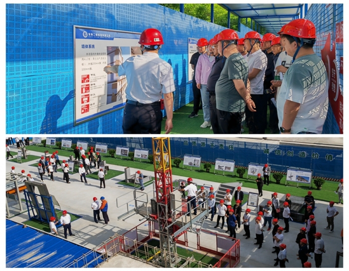 觀摩現(xiàn)場以視頻、展板、實(shí)體、樣板等多方位形式,對(duì)綠色建造、智能建造、關(guān)鍵施工技術(shù)共計(jì)10余項(xiàng)創(chuàng)新技術(shù)進(jìn)行集中展示,全面展示了裝配式鋼結(jié)構(gòu)體系、綠色建筑材料的應(yīng)用、文明施工管理現(xiàn)代化模式。