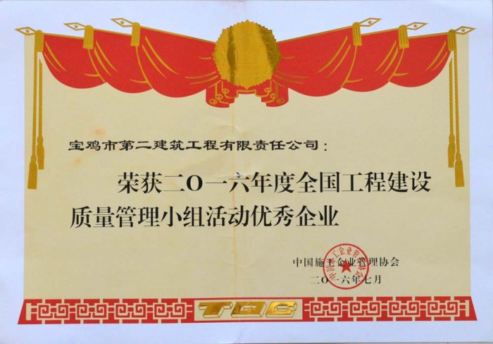 2016年度全國工程建設(shè)質(zhì)量管理小組活動優(yōu)秀企業(yè)